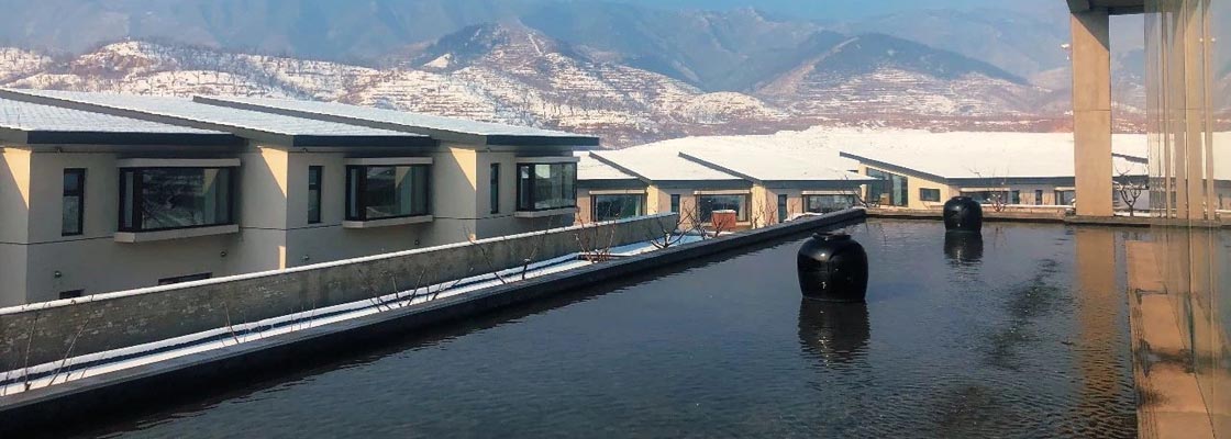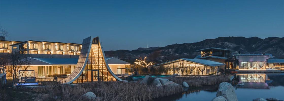 秦山海间温泉度假景区,简称山海间,位于河北省秦皇岛市青龙满族自治县肖营子镇温泉村,是位于一座隐逸于群山中的乌托邦世界。这里位于明长城脚下,这里的冷口温泉毗邻国家级森林公园,汲取着大自然赠予的富氧空气,滋养于一望无际苍翠欲滴的绵延山色,也感动于明长城数百年的守护。